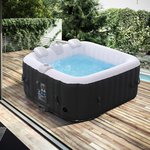 Avec sa forme carrée, ce modèle peut accueillir jusqu’à 4 personnes et vous propose un moment de pure détente dans une eau chauffée jusqu’à 42°C. Mais encore, en mode 2 places vous pouvez profiter des reposes tête et du porte-gobelet pour relaxer comme dans un hôtel de luxe. Pour son prix pas cher, le test de ce spa gonflable n’a abouti qu’à des avis très favorables.